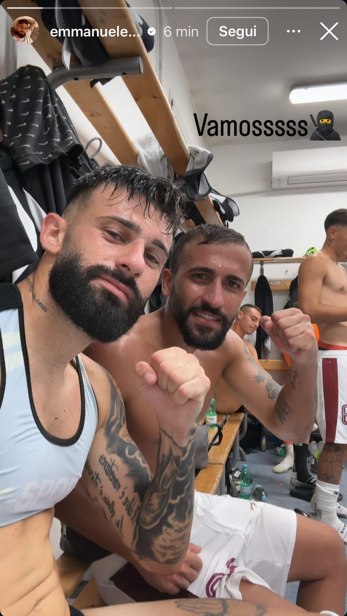 Dopo pochi minuti dalla fine del match, Emmanuele Matino ha pubblicato una stories su Instagram dagli spogliatoi dello stadio di Giugliano. Il difensore ha pubblicato uno scatto in cui è ritratto insieme a Mattia Tascone, la didascalia non lascia spazio ad interpretazioni: “Vamosssss (Andiamo)”.